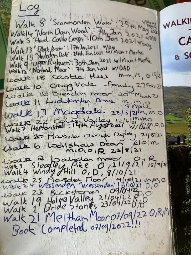 I started the Calderdale way with my family and followed the sections in the book, sometimes splitting stages into more parts. I have added the different parts and dates I did them.