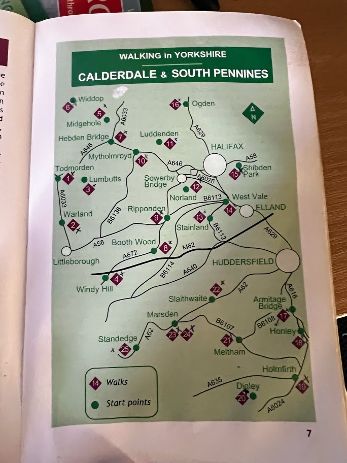 One of the main challenges of the walk is the lack of guides especially walking books. As best to my knowledge the guides are no longer being published therefore I have had to buy the 'one in 12 walks, walk the Kirklees way' book second hand. Despite this the guide is relatively current - being published in 2000. The ISBN of this book is 9780903603331.